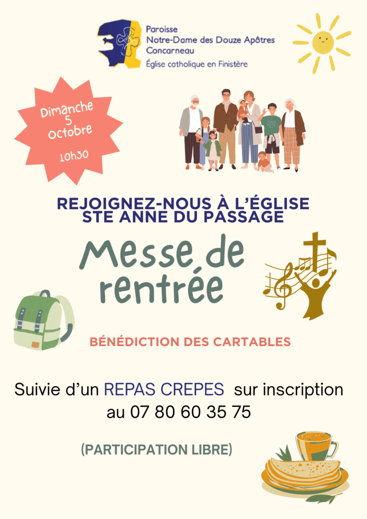 9 juillet 2025Samedi 21 Juin a eu lieu la fête du caté sur le thème « Pèlerins d’espérance » ! Sous un soleil radieux, et porteurs de notre jolie bannière (merci Marie-José !), les enfants et les catéchistes accompagnants ont cheminé de Kersidan à St Philibert avec des pauses spirituelles. L’église et ses abords ombragés nous ont ensuite permis les activités ludiques de l’après-midi et un délicieux goûter de crêpes (merci Isabelle !). La journée s’est conclue par une messe partagée avec les petits de l’Eveil à la foi et joyeusement animée (merci les Lucioles !).Que le Seigneur vous accompagne sur vos chemins d’été et bonnes vacances à tous ! [...]