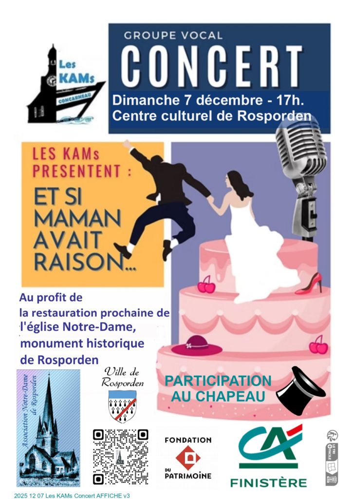 ASPNDR va bénéficier le dimanche 7 décembre 2025 à 17h00 au centre culturel de Rosporden d’un concert du Groupe vocal les KAMs, choeur bien connu dans le bassin concarnois.